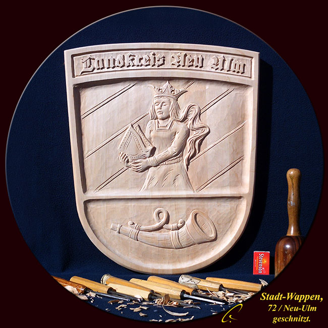 Landkreis Wappen Neu Ulm - 72 - geschnitzt, naturbelassen.