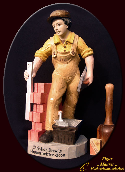 Berufe - Maurer, in Erle geschnitzt u. gefasst.